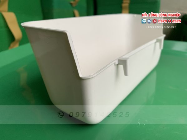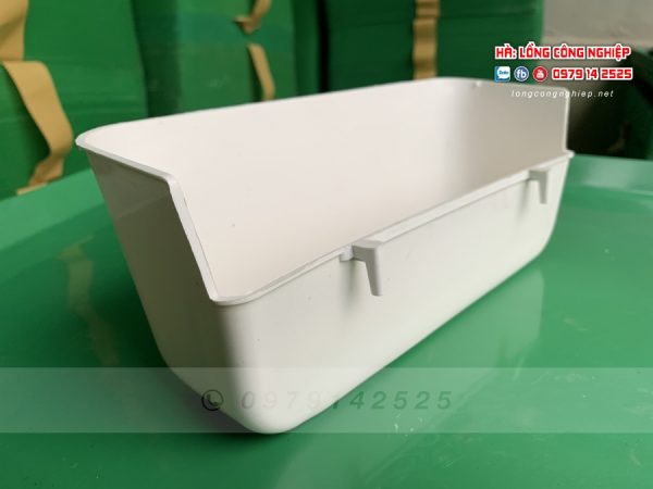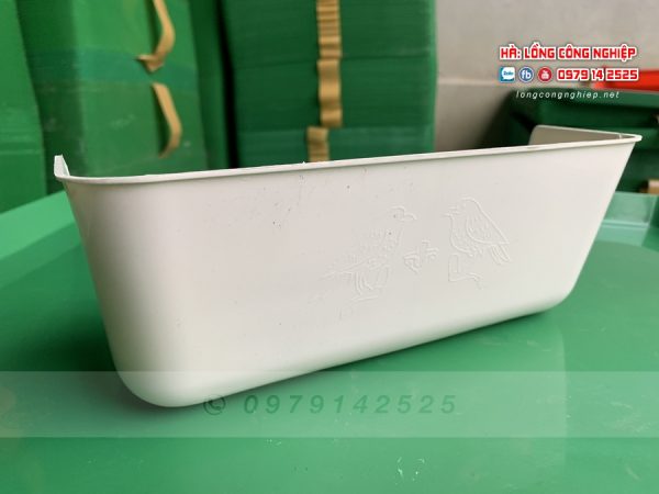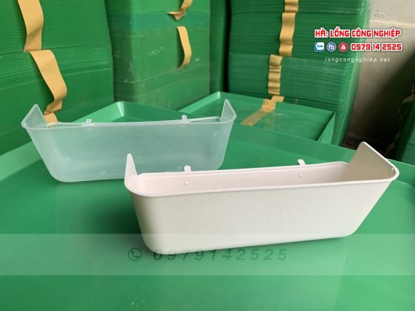 - – Có chiều cao thành máng phía ngoài được vát cao hơn phía trong hạn chế việc thức ăn bị rơi vãi so với máng ăn vuông thông thường.